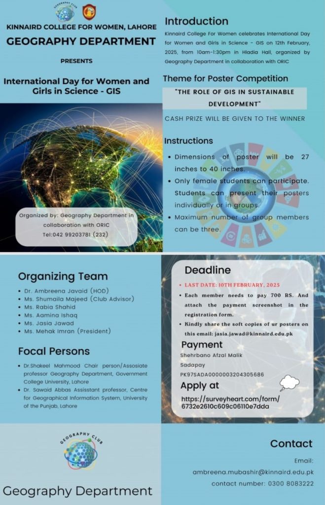Poster competition was hosted by Kinnaird business incubation center (KBIC) on 18 Feb, 2025 at Kinnaird College for women. This program aims to improve economic and social strengths of young women. Many students enthusiastically participated in the competition. This competition covered fields including of Natural, Physical, and Applied Sciences, Arts, Social Sciences, Humanities, Innovation &Technology.