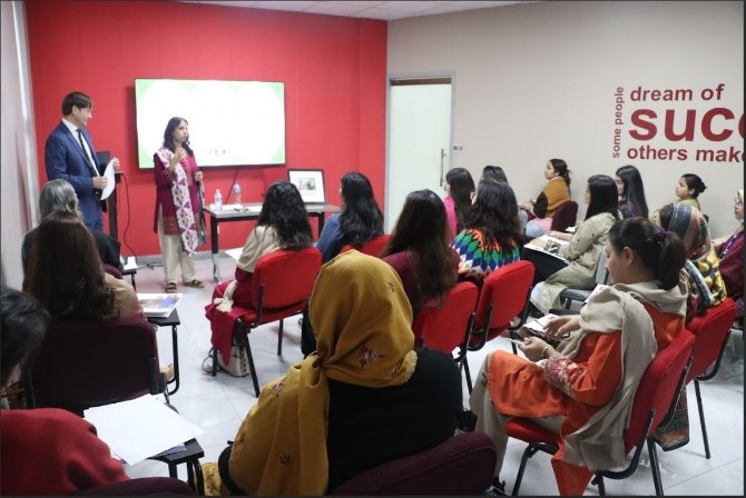Kinnaird College for Women- Business Incubation Center (KBIC)/ORIC Organized a workshop on power story telling. Professor Dr. Paul R.Edleman, Sauk Valley Community College and Professor Farah Habib, Bristol Community College was the Guest Speakers of the workshop. Teachers from Gov. Sector participated in workshop. Our speaker’s shared complete mechanism of Learning through storytelling which refers to a process in which learning is structured around a narrative or story as a means of ‘sense making’. It involves the use of personal story and anecdotes to engage learners and share knowledge.