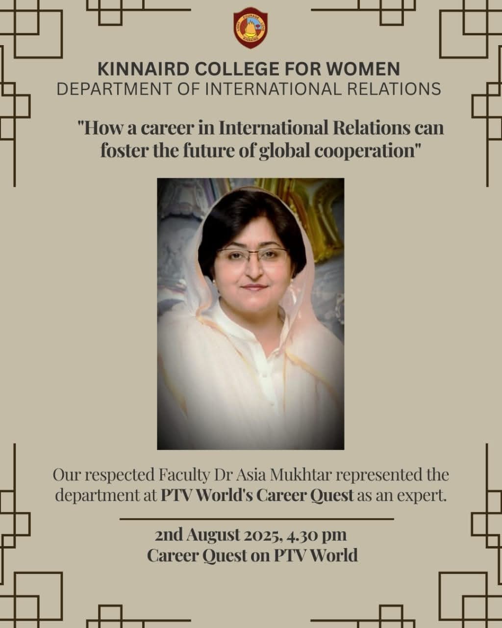 Kinnaird College has been providing high quality education to women for well over a century. Read the invigorating interview of the Respected Principal Kinnaird College for Women, Prof. Dr. Iram Anjum, published in Jang.