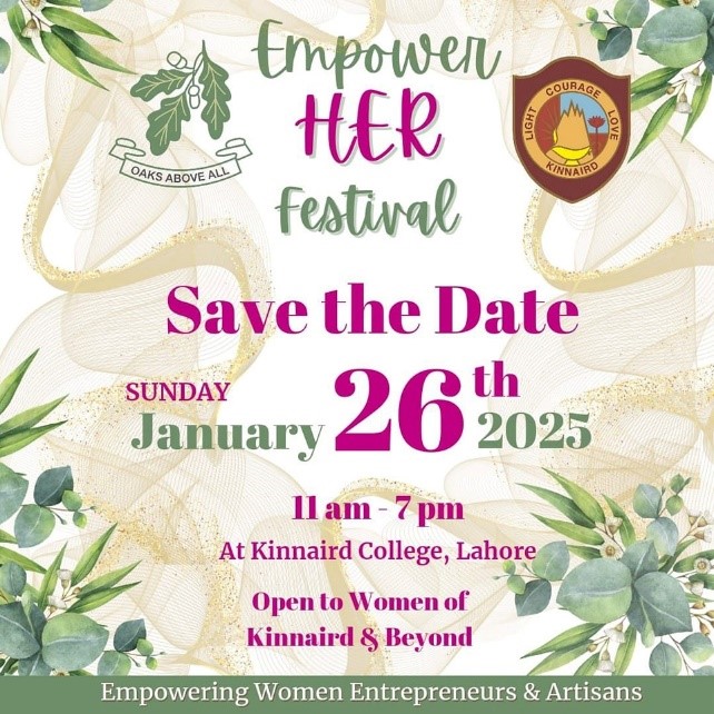 EmpowerHer Fest 2025 is a vibrant celebration of women’s creativity, strength, and inspiration, bringing together talent and innovation from across Pakistan. Scheduled for January 26, 2025, from 11 a.m. to 7 p.m. at the Kinnaird College Campus, the festival aims to unite, celebrate, and empower women through an exciting mix of music, food, art, and entrepreneurship. Students can enjoy free entry with their Kinnaird ID cards and experience a lively atmosphere featuring a DJ, delicious food stalls, unique products, and talented artisans. The event highlights women’s empowerment and creativity, inspiring a future driven by passion, collaboration, and purpose.