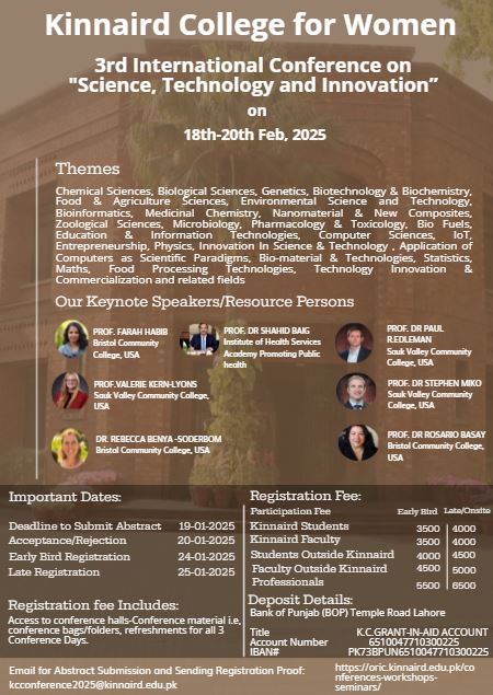Kinnaird College for Women 3rd International Conference on "Science, Technology and Innovation” on 18th -20th  Feb, 2025